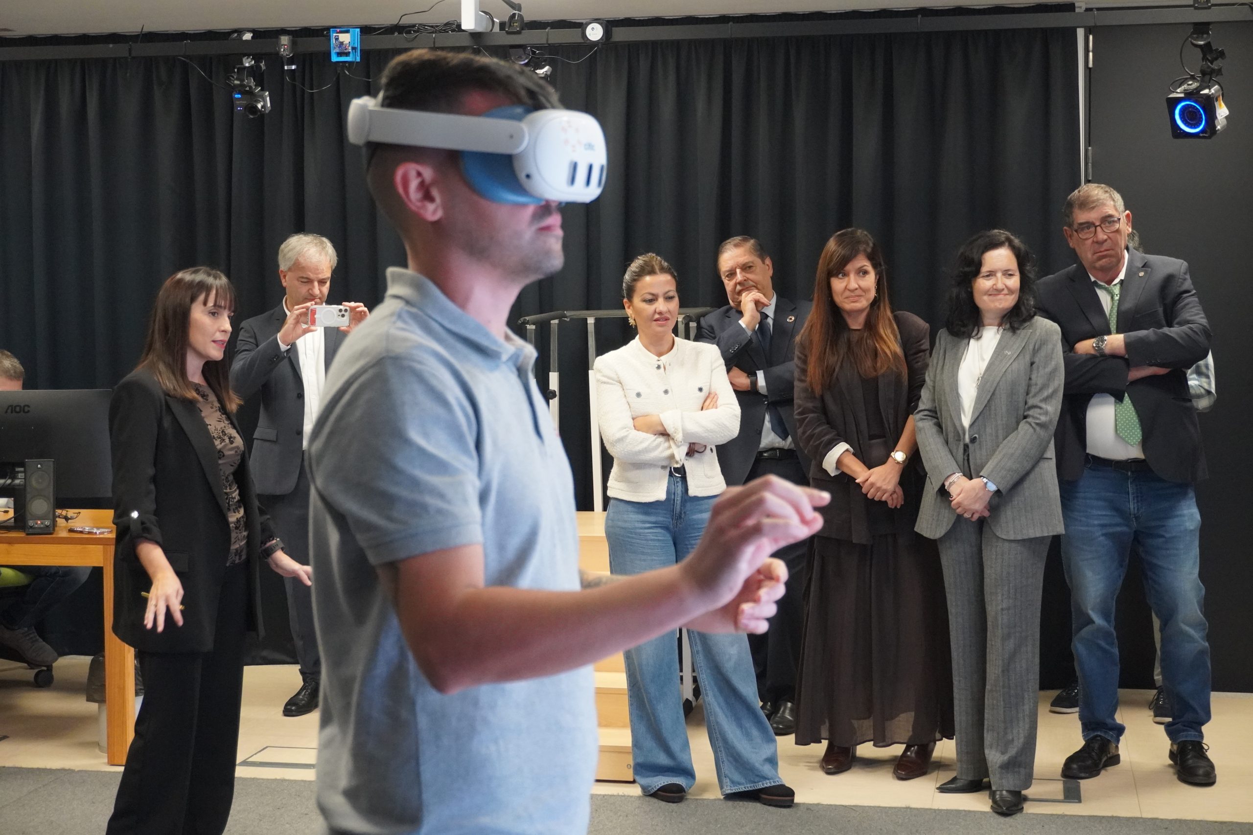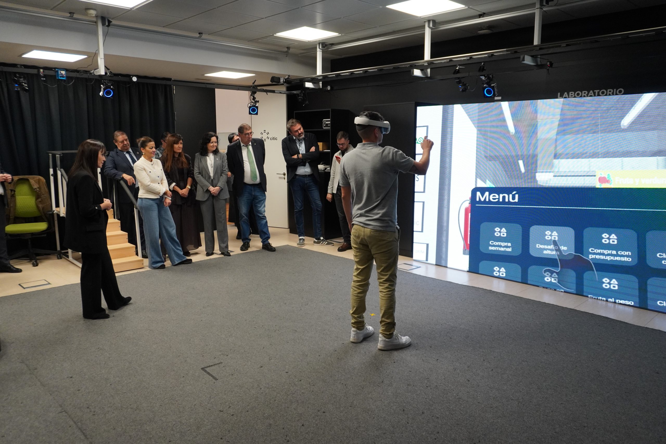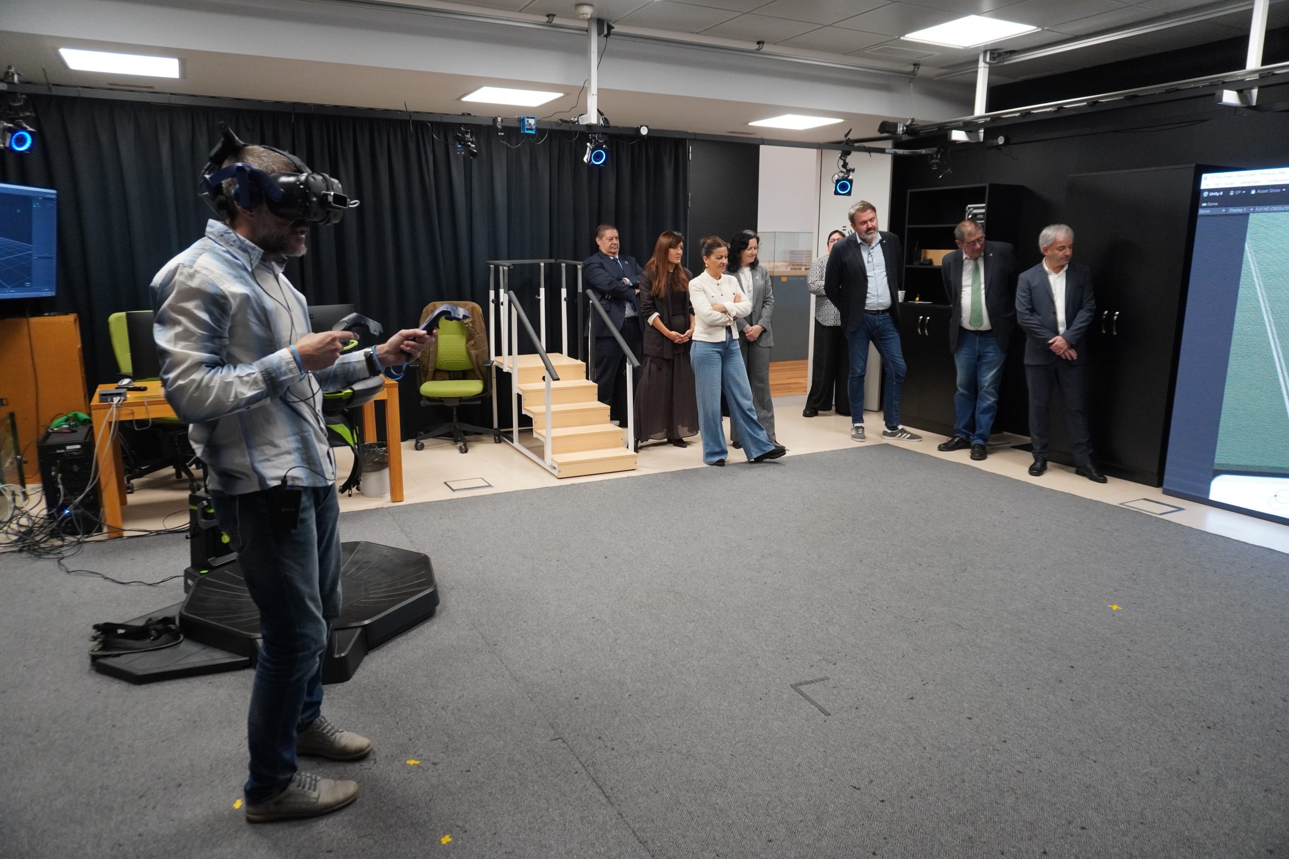 To close the visit, two researchers presented projects focused on using virtual reality for people with disabilities. Emilio Padrón showcased an immersive visualization system for home renovations to improve accessibility, while Betania Groba and Manuel Lagos presented Supermarket 4.0, a virtual reality (VR) application designed to train motor, cognitive, and functional skills in people with disabilities and older adults.